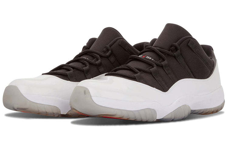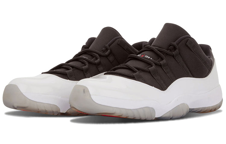Do you want a pair of shoes that are sure to turn heads? Look no further than the Air Jordan 11 Retro Low 'Tuxedo'. Originally designed at the request of basketball legend Michael Jordan himself, these sneakers have become a coveted item in their own right. With a sleek, monochromatic black upper with a patent leather wrap in white, these shoes are sure to make you stand out from the crowd. The red branding elements add just the right amount of pop to complete the look. Whether you're hitting the court or just hanging out with friends, the Air Jordan 11 Retro Low is sure to give you the style and comfort you need.