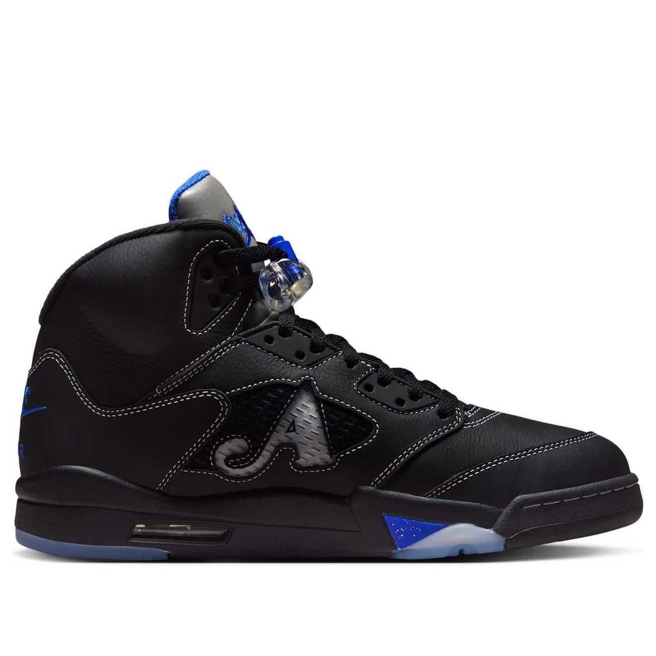 The Awake NY x Air Jordan 5 "Racer Blue" drops August 30th. Featuring a black tumbled leather upper with white stitching, blue accents, and a classic midsole, these sneakers boast Awake NY's 'A' emblem cutout and co-branded tongue detailing. 'NY' and '23' heel embroidery complete the design.