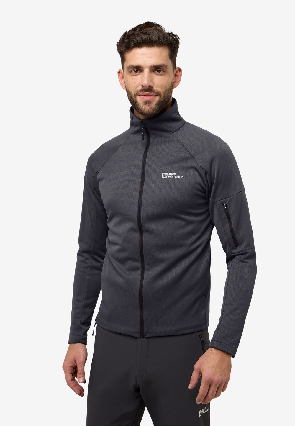 The ALPGRAT FULL ZIP is a higher-performance fleece jacket, using a STRETCH FLEECE DIAMOND GRID for improved breathability. It is a very warm midlayer worn under a shell, or a breathable outer jacket in shoulder seasons.
