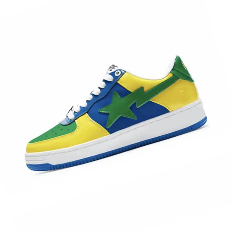 in a variety of colors and styles. They typically feature a white leather upper with BAPE branding on the tongue and heel. The Bapesta shoes also have a gum rubber sole and a star motif on the side. Some BAPE Air Force Shoes also have limited-edition designs that feature collaborations with other brands or artists.