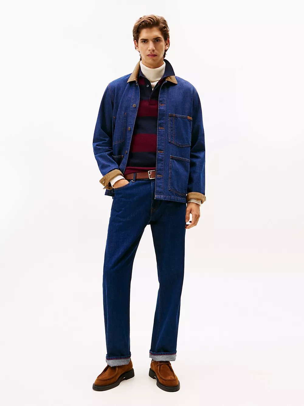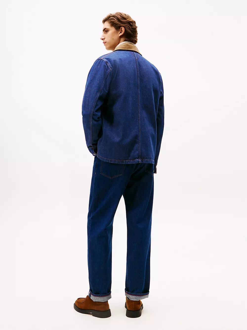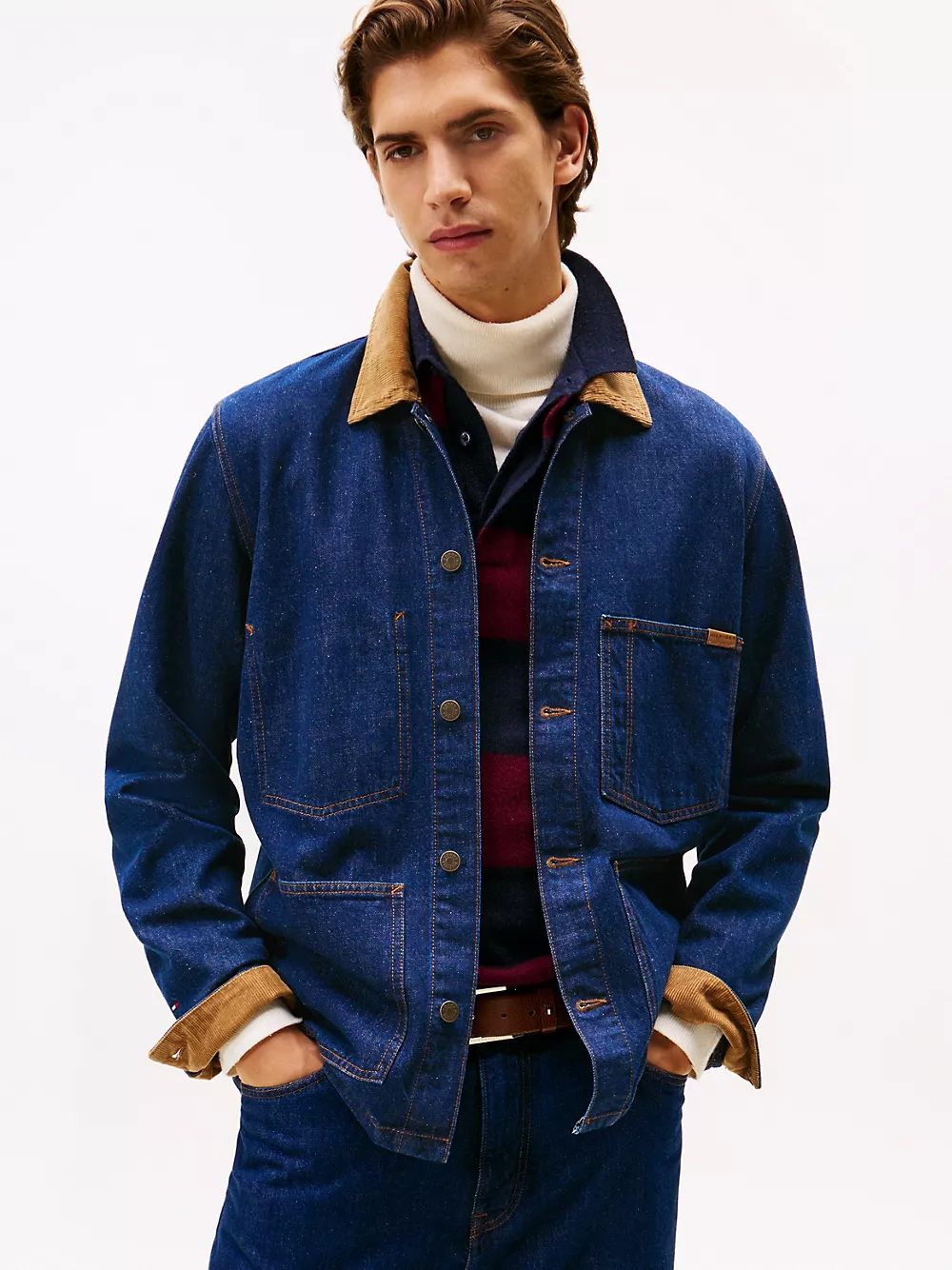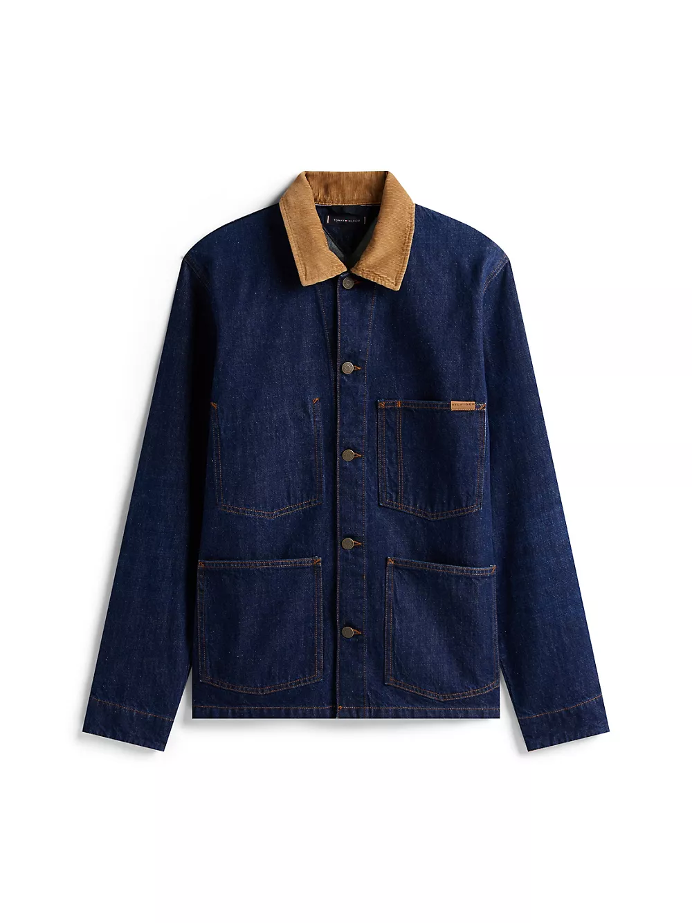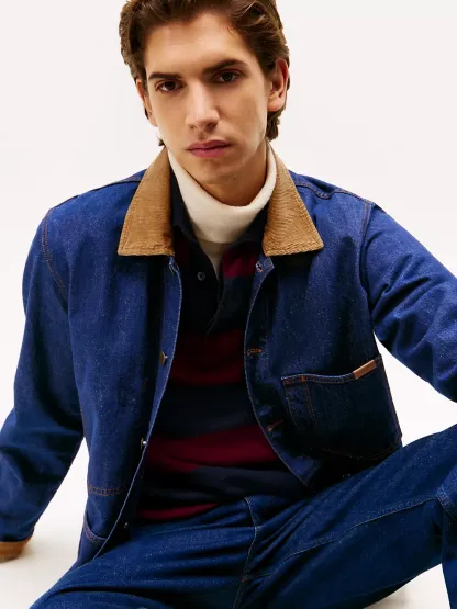 Tommy Hilfiger men's jacket. Our rugged chore jacket features a corduroy collar and is made from rigid denim in a vintage-inspired utility design. Part of our Tommy Jeans collection.