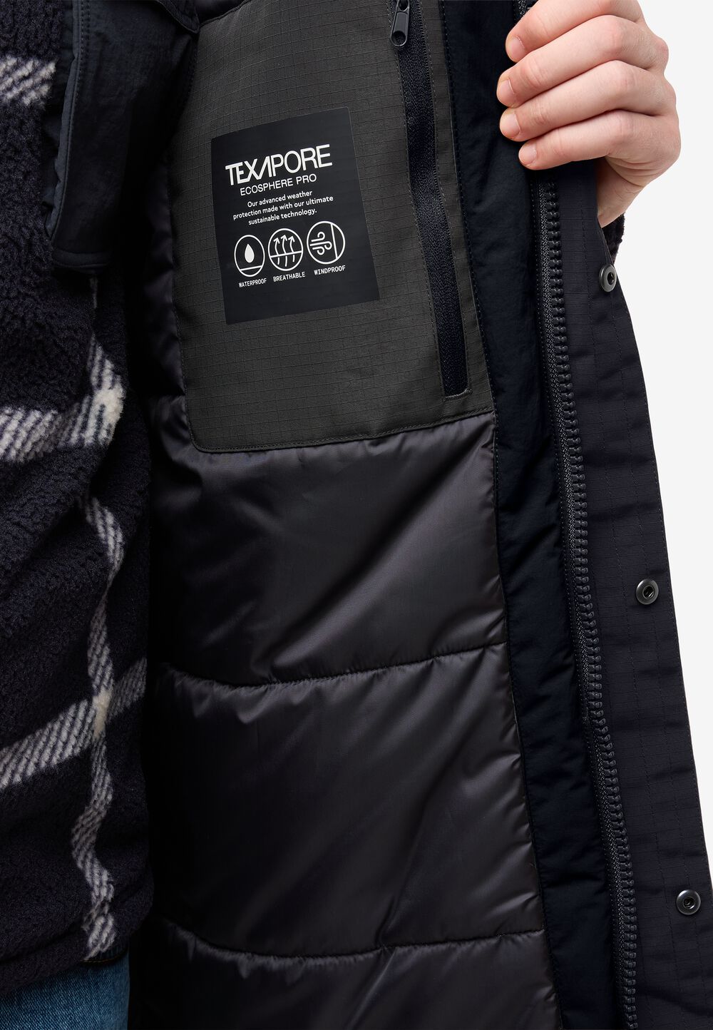The GLETCHERSEE PARKA is a slightly longer, insulated parka with classic styling and contrasting ripstop fabric over the shoulders and hood. With TEXAPORE ECOSPHERE PRO CRINKLE 2L fabric for weather protection, and TEXAWARM synthetic insulation to keep you warm. A chest pocket and two hand pockets provide ample storage, while an internal pocket safely holds valuables.