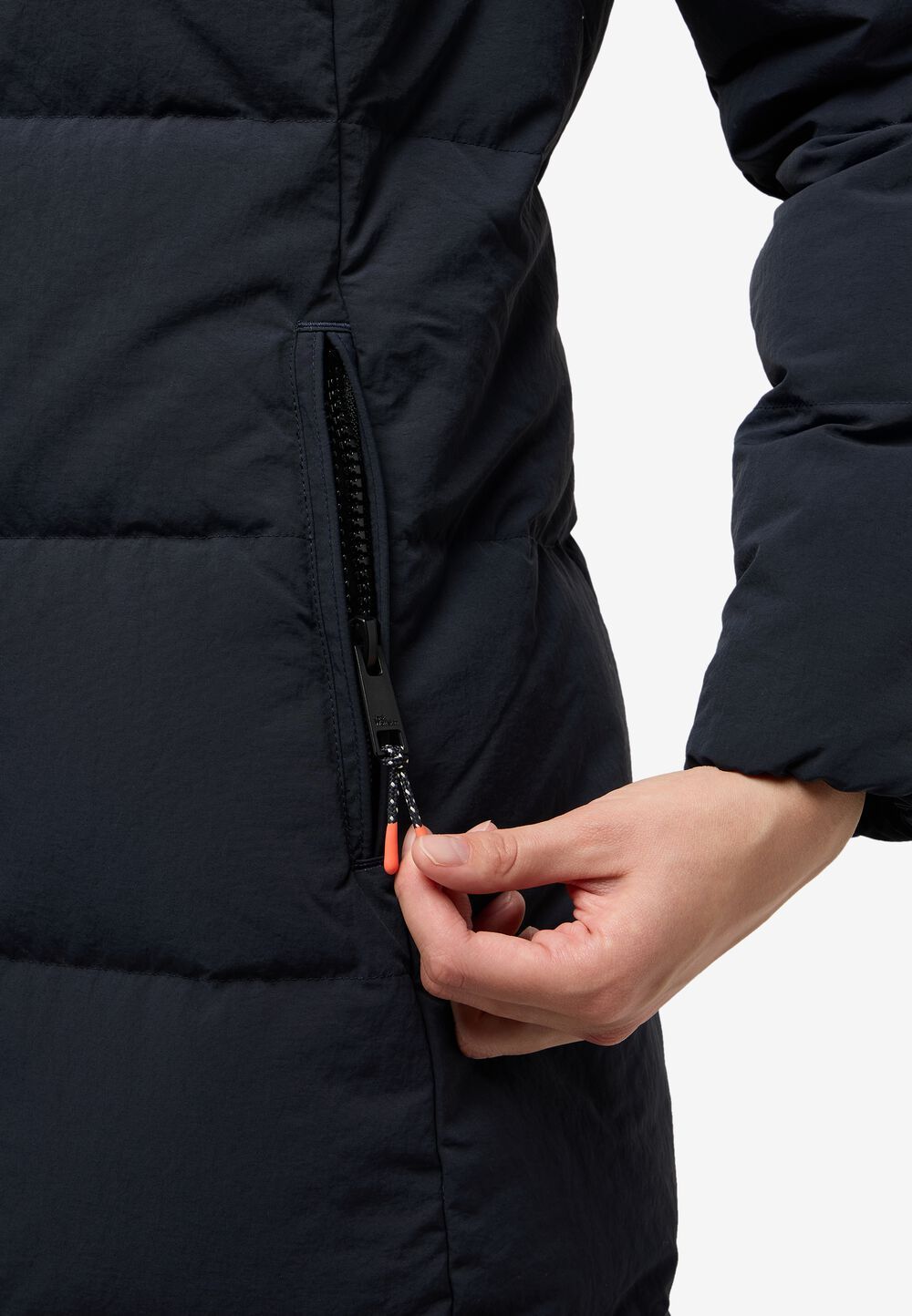 - Long parka with down filling