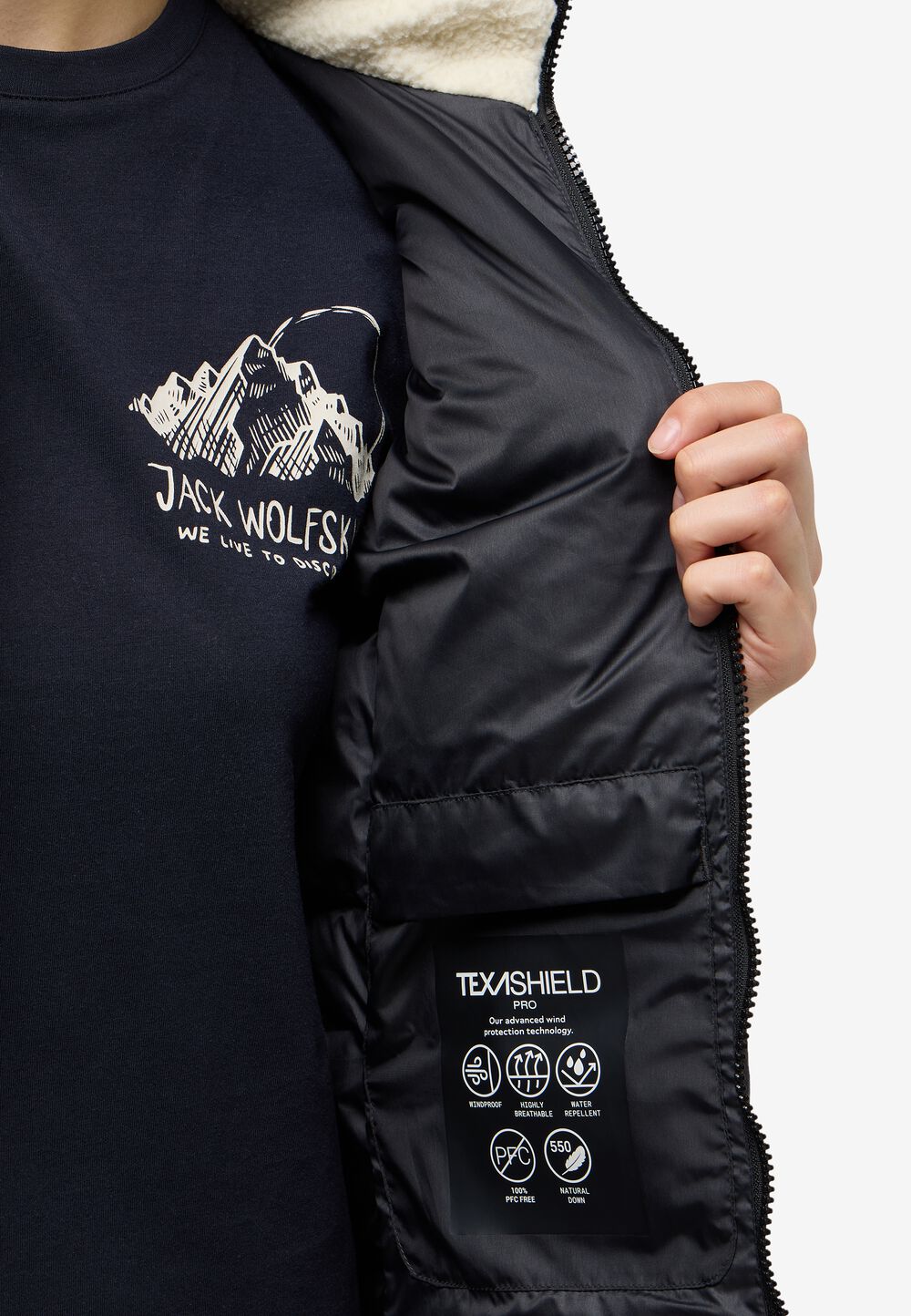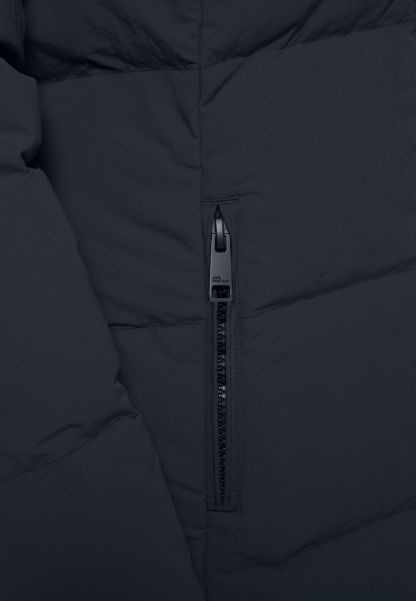 Bring the style on your cold weather walks with the NORDLICHT COAT. It is long, with a big hood that sinches with 2 cords. Inside the quilted exterior is a generous filling of 550 RDS certified down that keeps you nice and warm. The recycled face fabric features TEXASHIELD PRO technology, offering protection from wind and light precipitation. 2 hand pockets keep hands warm when you forget your gloves.
