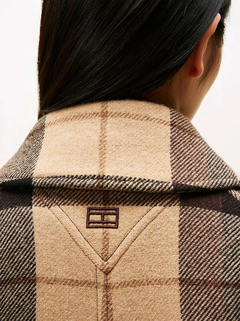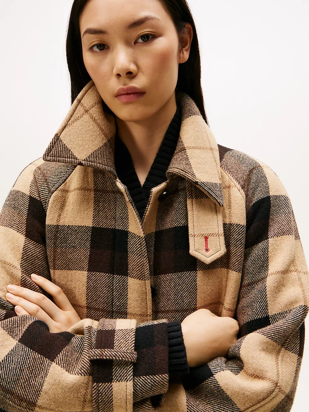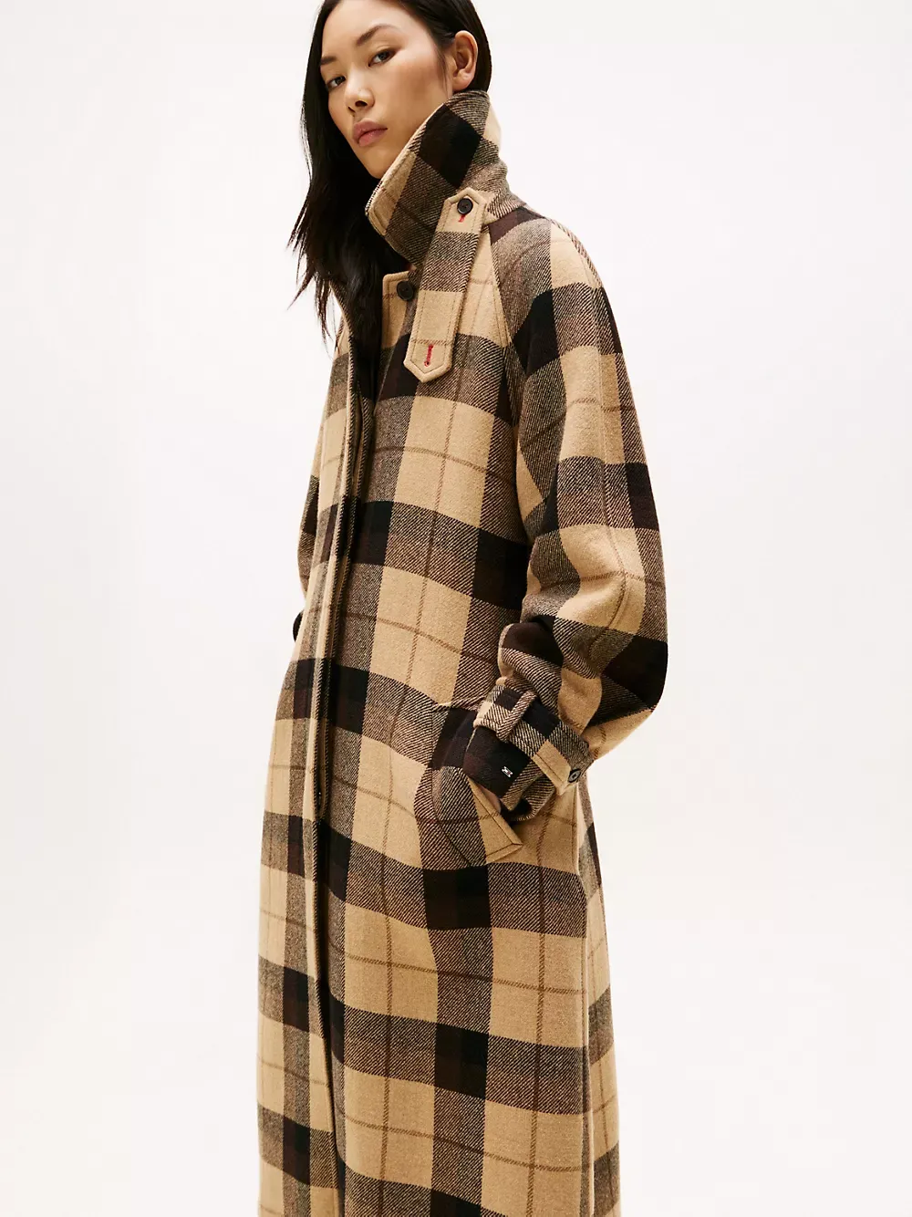 Tommy Hilfiger women's coat. Stand out from the sea of black outerwear with our bold plaid print coat, made from a wool-cashmere blend for extra softness. It's cut with a comfortably oversized fit that can easily be adjusted at the waist with a detachable belt.