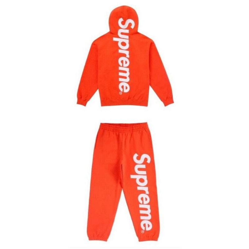 The Supreme Jogging Suit Set comes with a matching top (hoodie or zip-up jacket) and jogger pants, offering a full coordinated streetwear look.