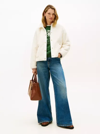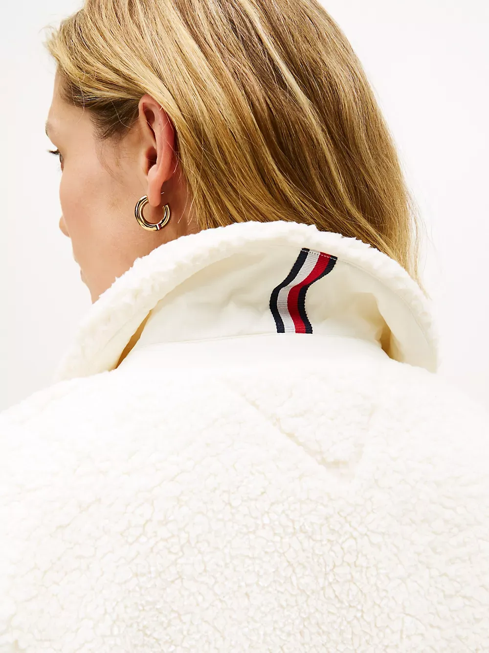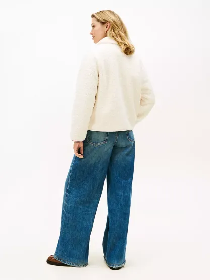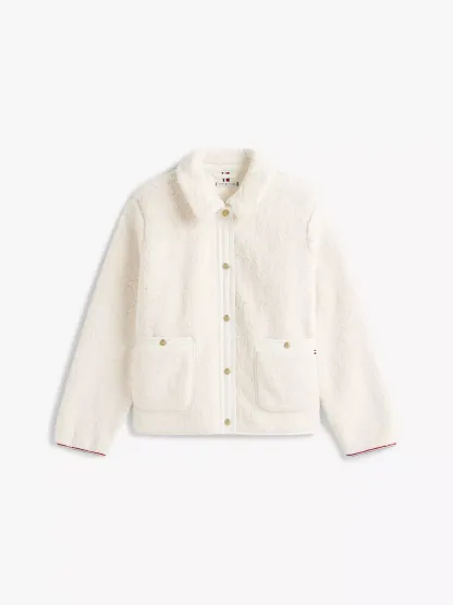 Tommy Hilfiger women's jacket. This plush teddy fleece jacket ensures extra comfort, warmth, and (most importantly) style, making it the perfect seasonal layer as you venture through your day. This structured design is finished with gold-tone snap closures, a spread collar and handy patch pockets.