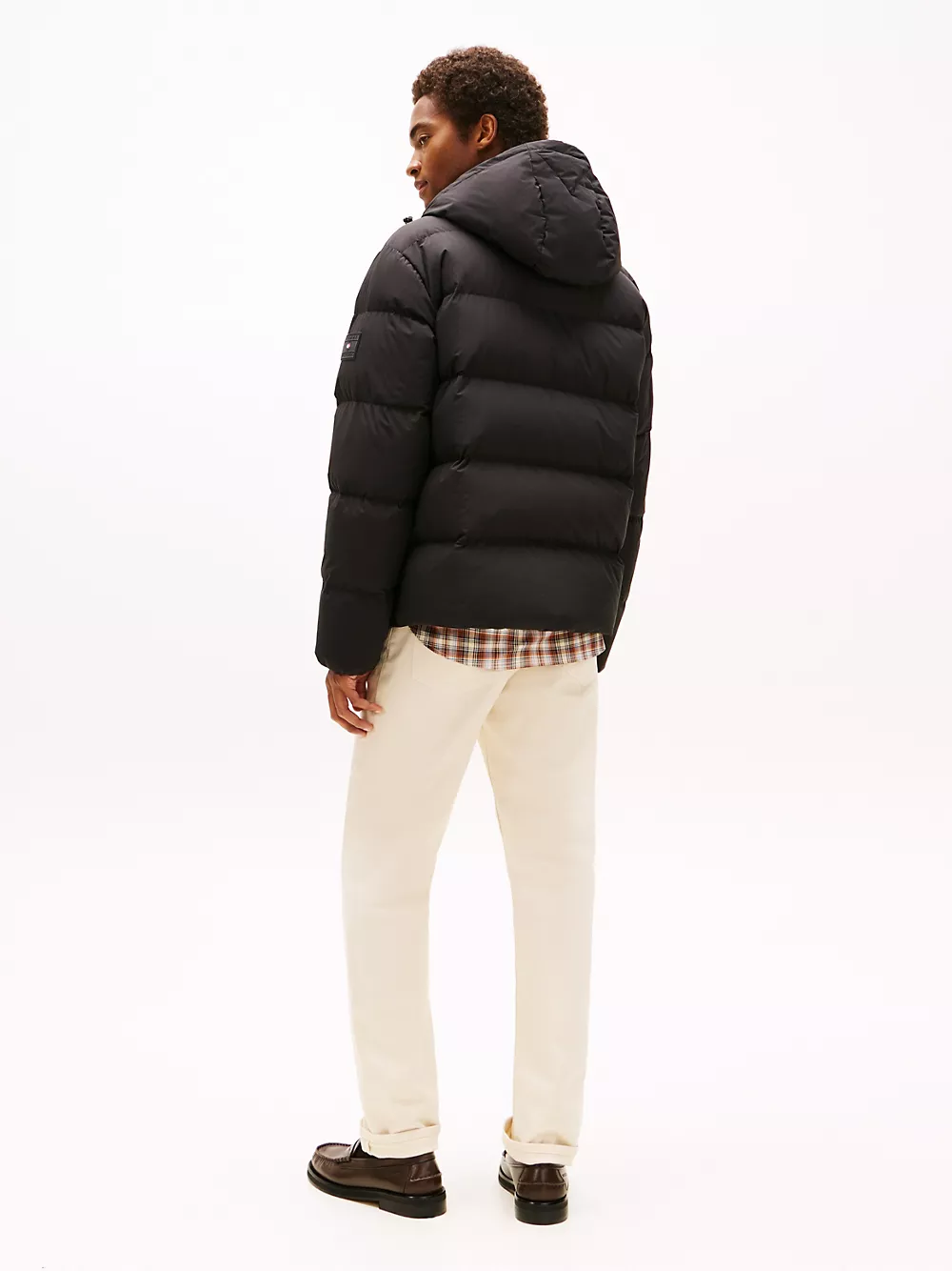 Tommy Hilfiger men's jacket. Designed to brave the elements, this hooded puffer jacket features a smooth, water-repellent shell and warm down insulation.
