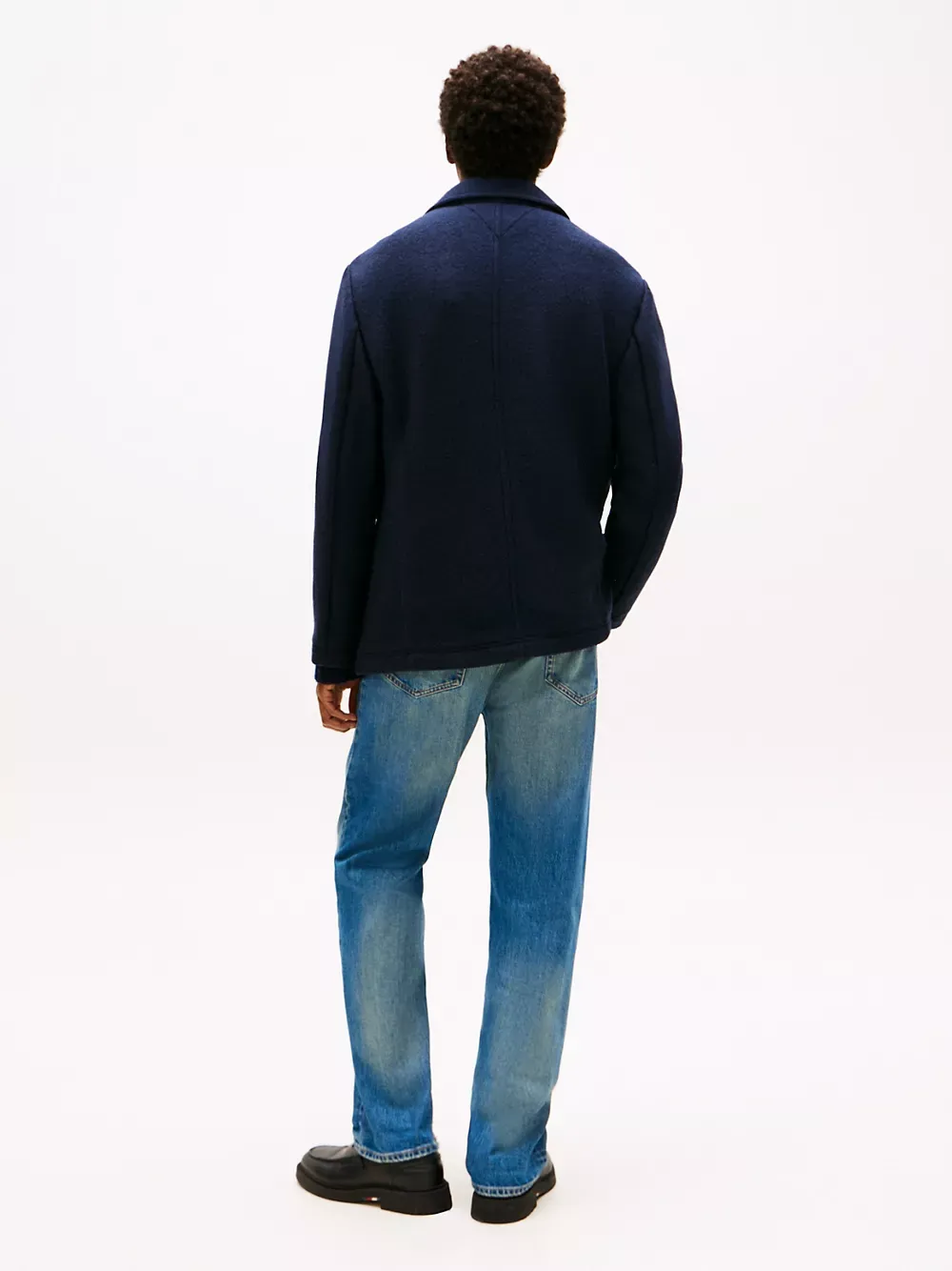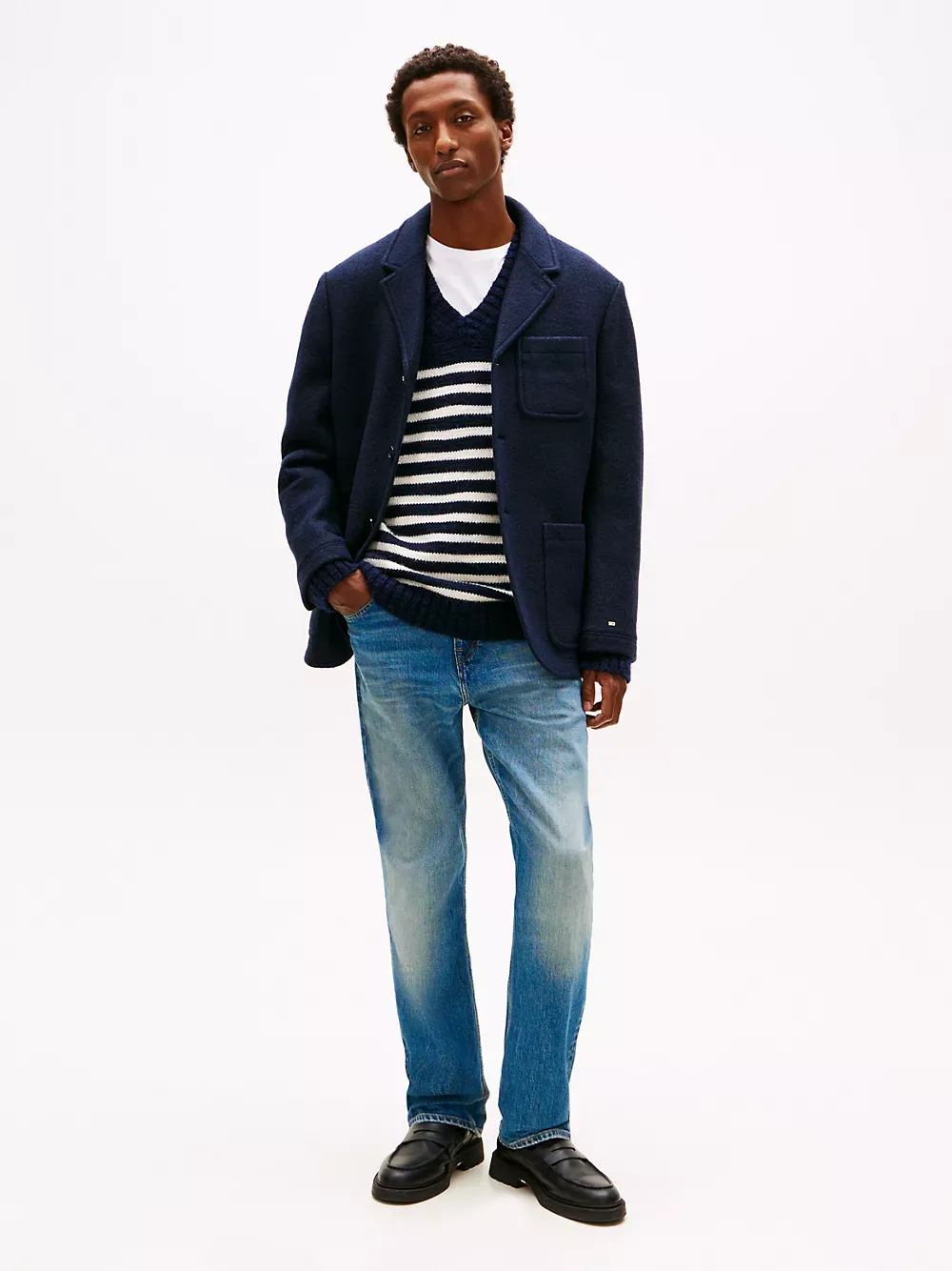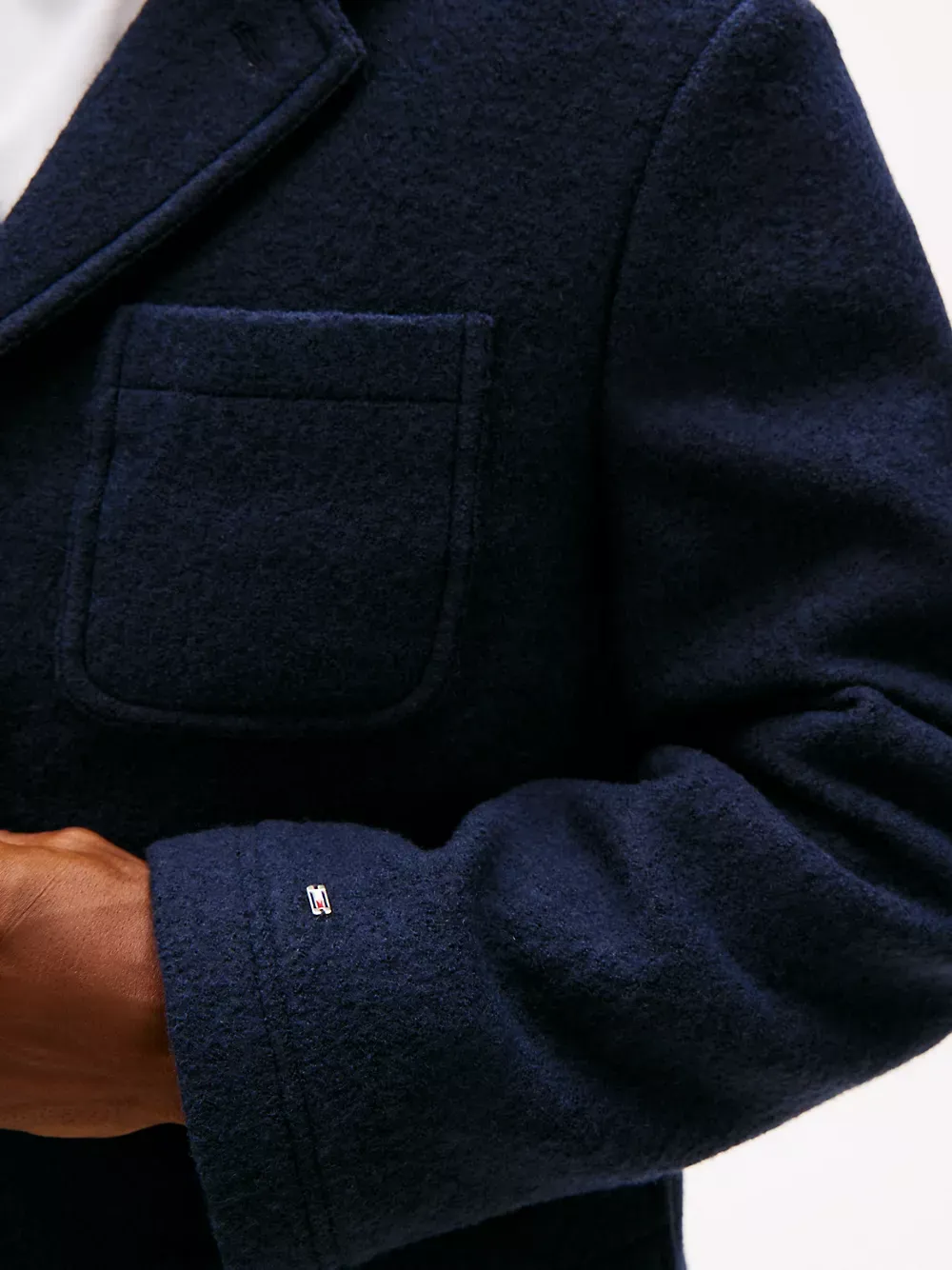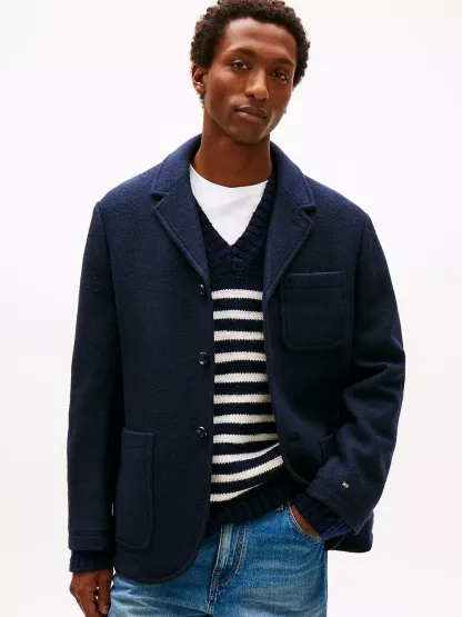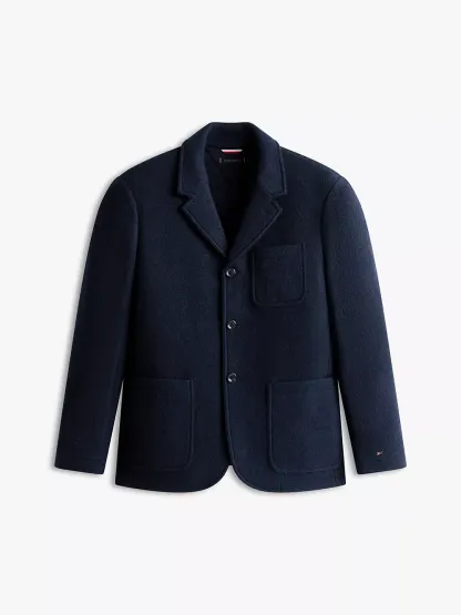 Tommy Hilfiger men's blazer. Master business-casual dressing with this wool-blend blazer. Its unlined construction allows for easy layering over button-ups and sweaters, making it ideal for the office or a weekend outing.