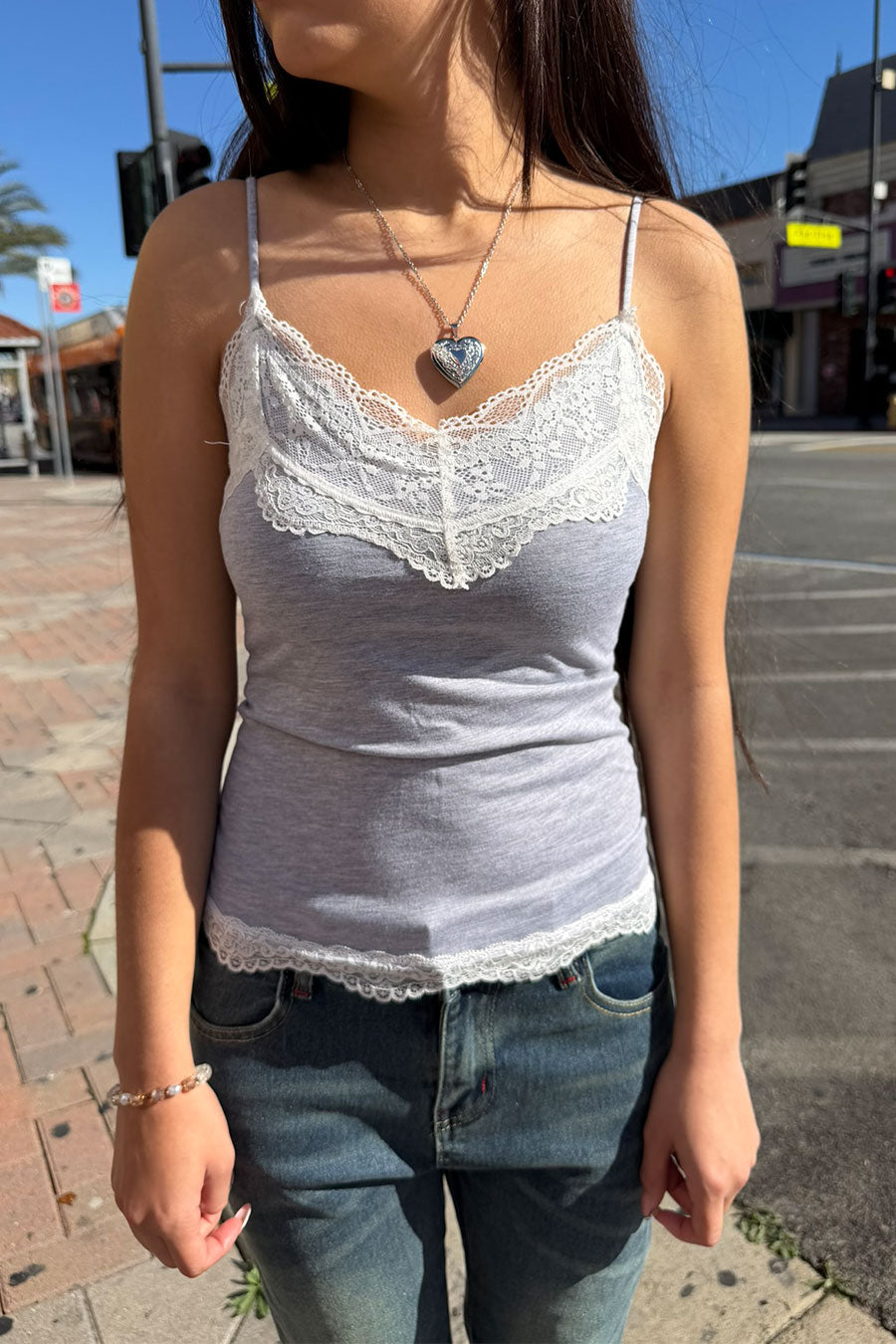 2000s Essential Double Contrast Lace Trimmed Y2K Cami Tank Top