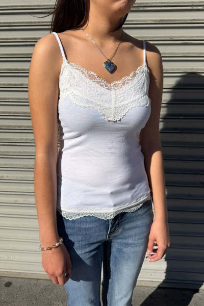 Description: 2000s Essential Double Contrast Lace Trimmed Y2K Cami Tank Top