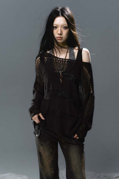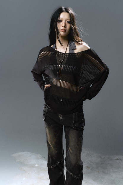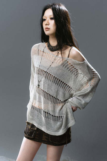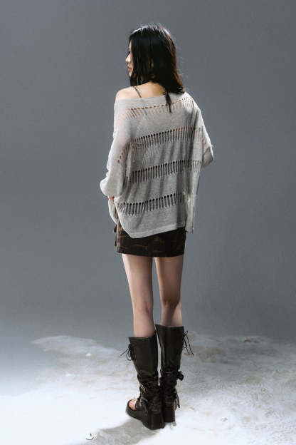 Loose Open-Stitch Knit Pullover
