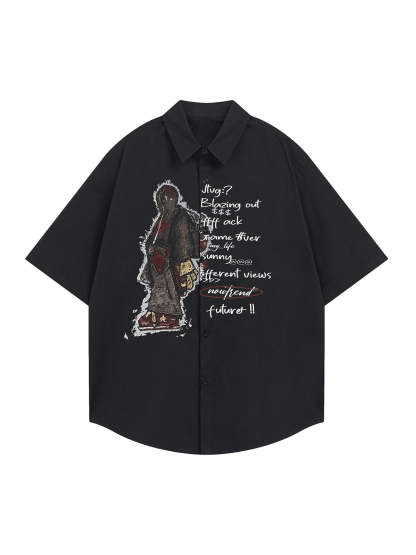 Oversized Graphic Cartoon Letter Print Short-Sleeve Shirt