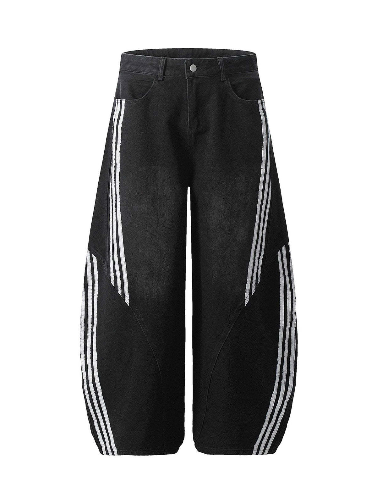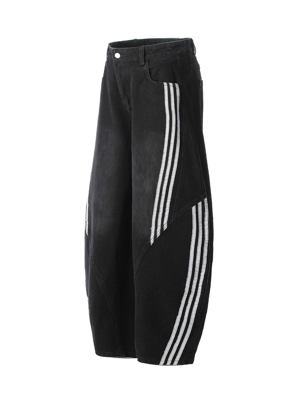 Striped Stitching Barrel Jeans
