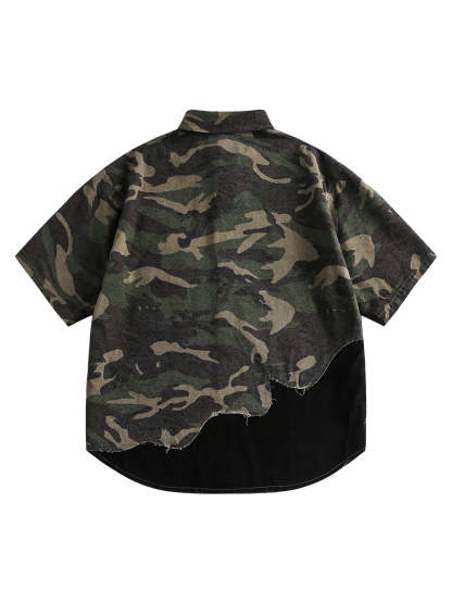 Camouflage Patchwork Print Letter Short Sleeve Shirt