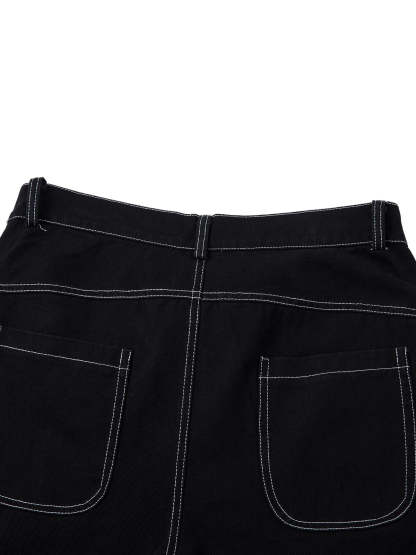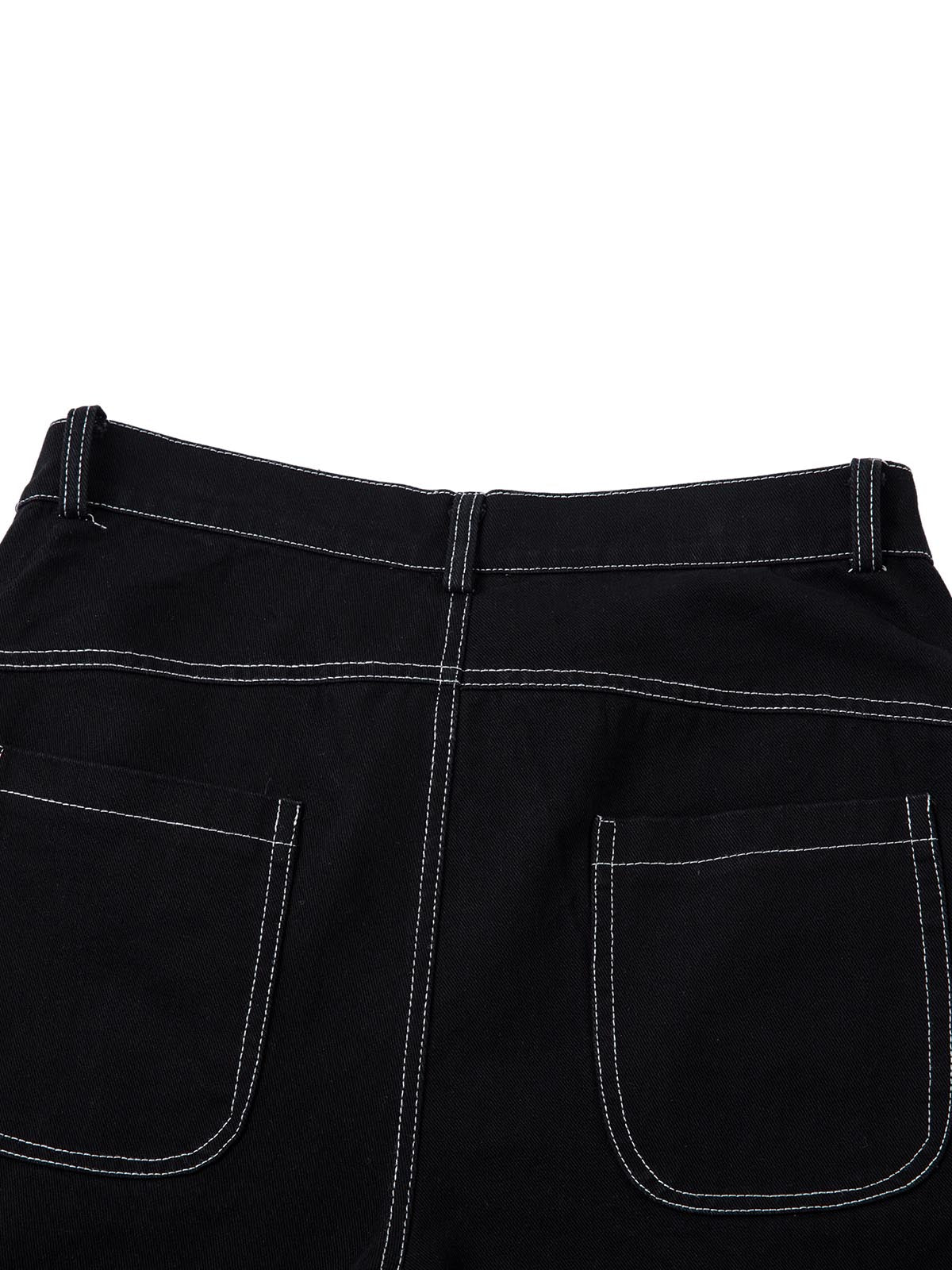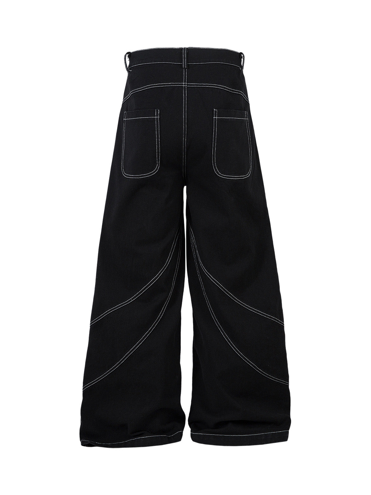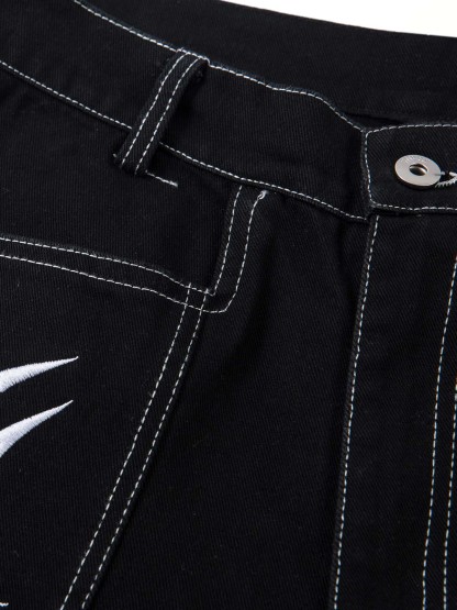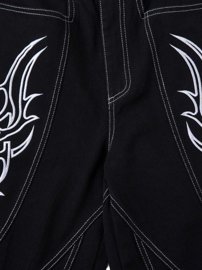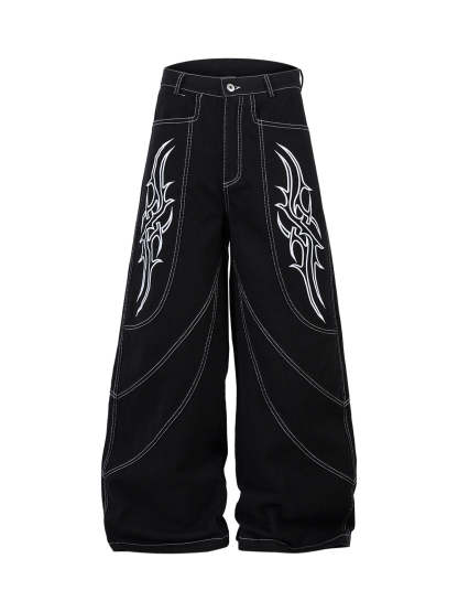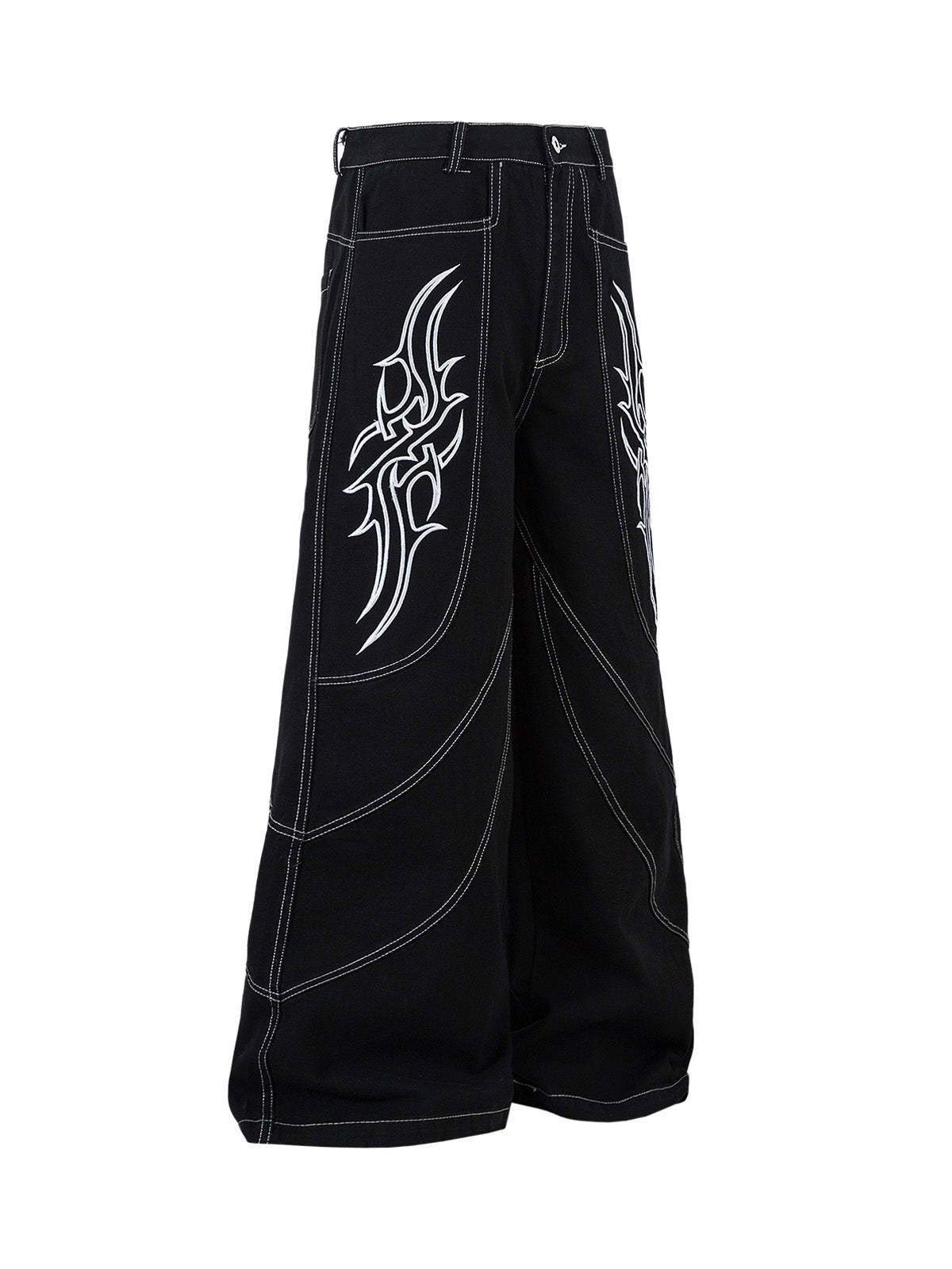 Deconstructed Contrast Embroidered Baggy Jeans - 2330