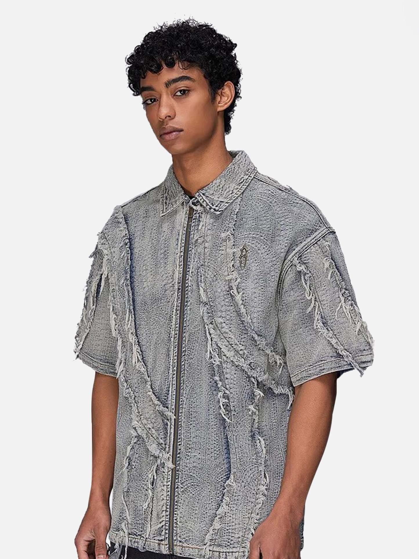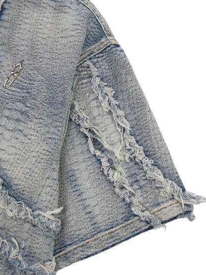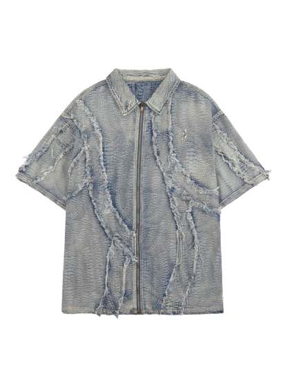 • Detail Features: Chest Pocket, Button Closure, Distressed Design