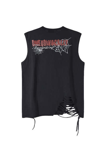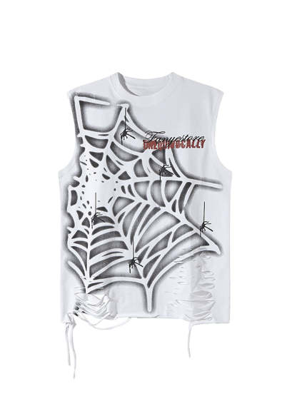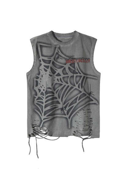 Raggedy Design Spider Web Graphic Vest - 2360